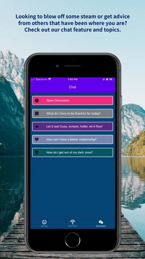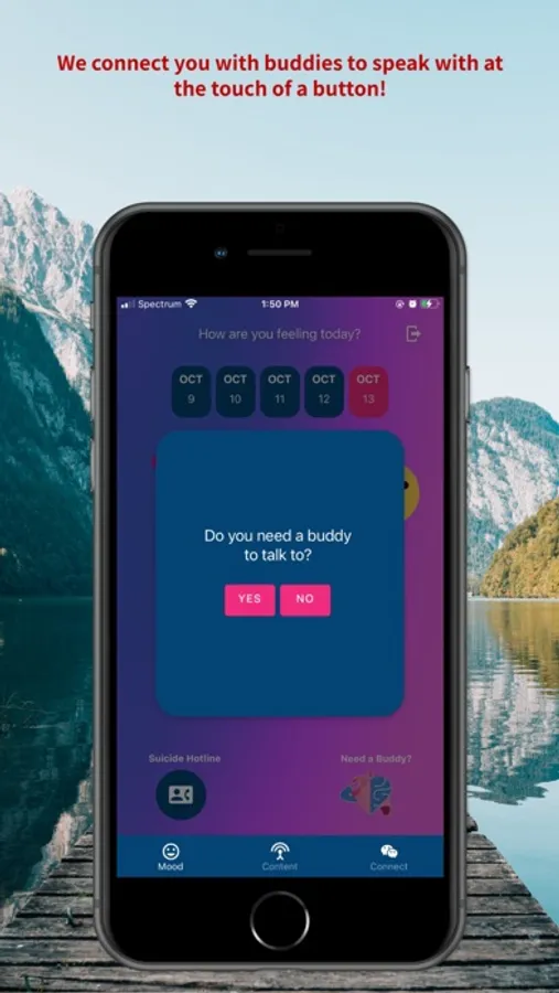 My Buddy 1OV3, the app that is set out to eradicate suicides in the world. We are creating a Buddy system like no other, by giving users the opportunity to reach out and have someone to speak with at the push of the need a Buddy button. Or maybe you need a way to get out of your own mind. We have a content page that will be updated regularly. Then one of our proudest features in the chat window. Where users can go and let out their inner thoughts anonymously and say how you're really feeling no strings attached.