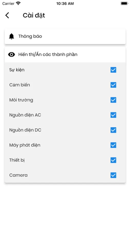 - Giám sát các thông số gồm: Phát hiện, cảnh báo, môi trường, nguồn điện ...