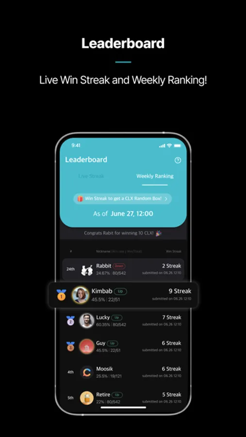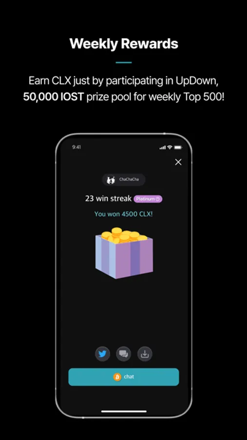 - Every time you participate in UpDown, you can earn at least 1 CLX, and if you achieve a winning streak, you'll receive a CLX random box.