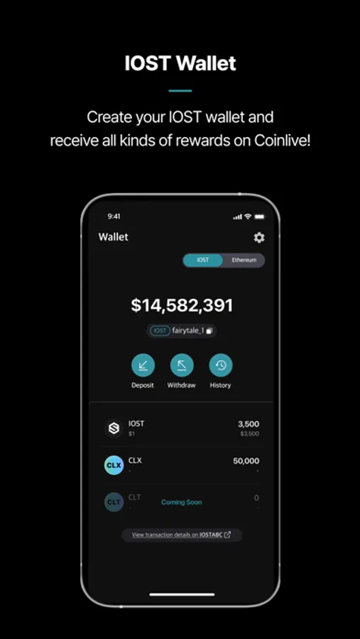 - Quickly create IOST and Octet wallets within the Coinlive app for free.