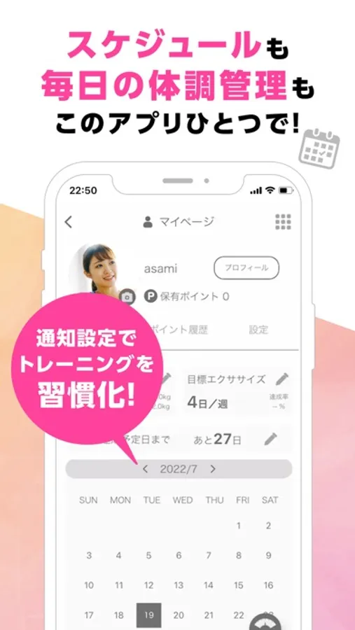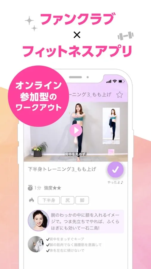 フィットネスアプリとファンクラブの要素を兼ね備えた、 新しい価値を提供するアプリです。