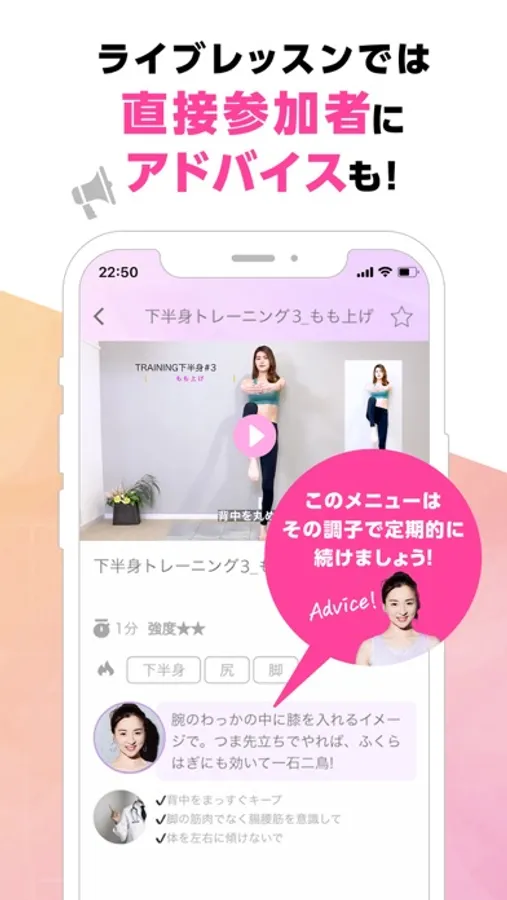 トレーニング回数等でポイントが貯まり、「フレンド」のLIVE配信を視聴したり、コミュニケーションしたりすることができます。