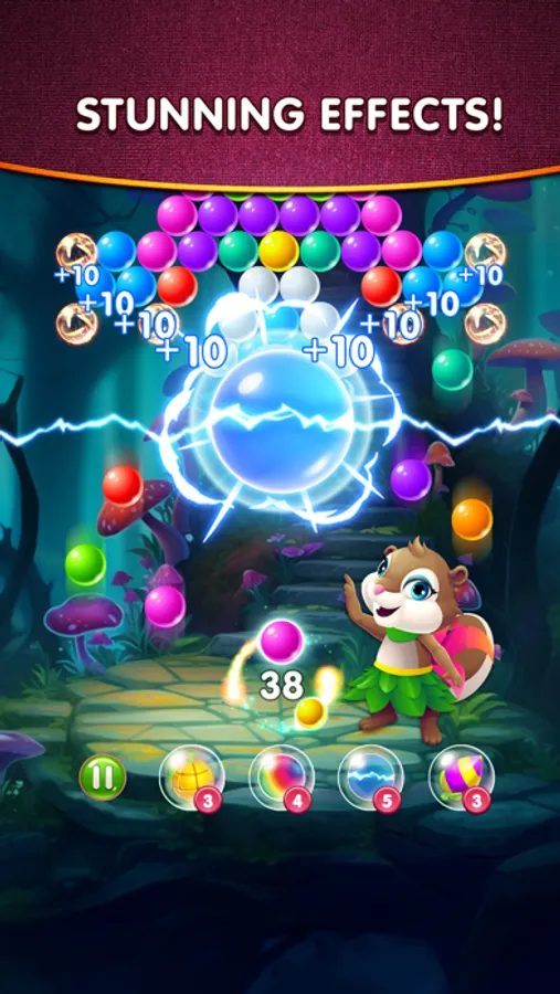 - Exciting Levels and Challenges: Start your bubble adventure through a magic forest, and unlock new levels and chests. Every level brings an unforgettable twist.