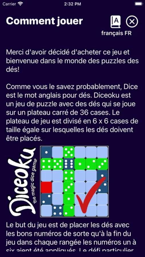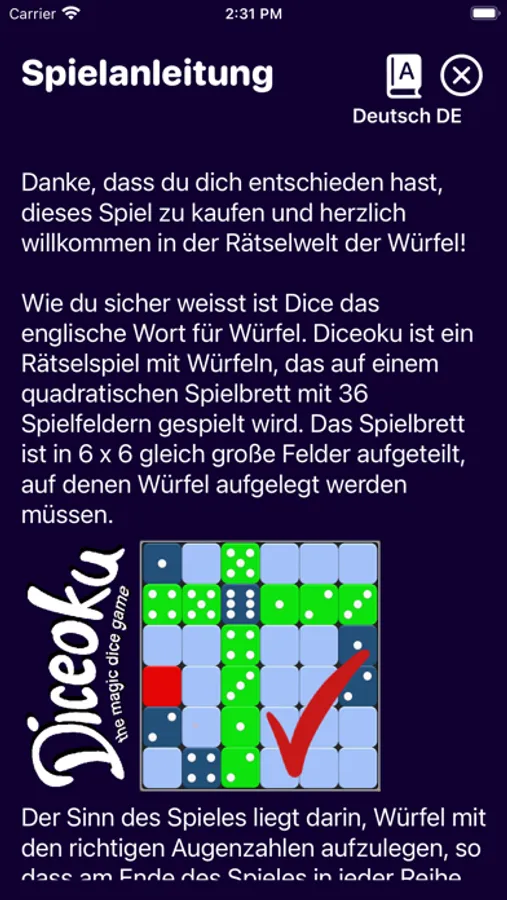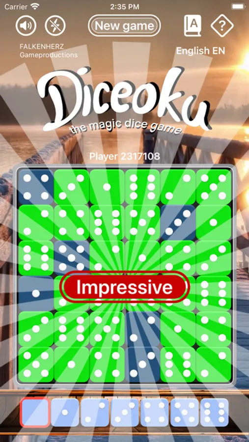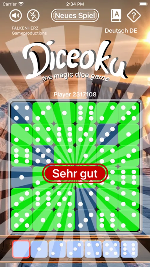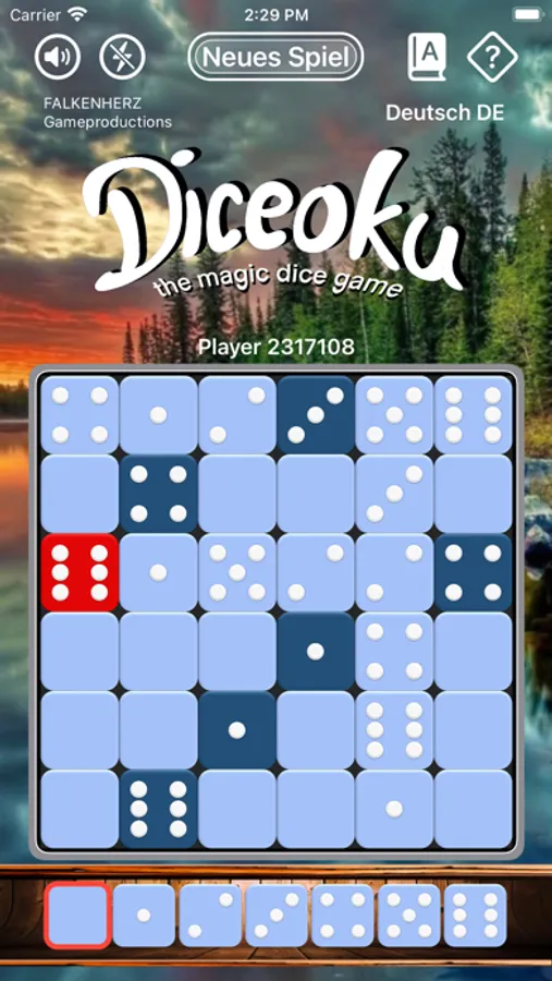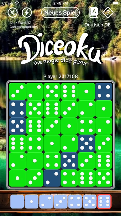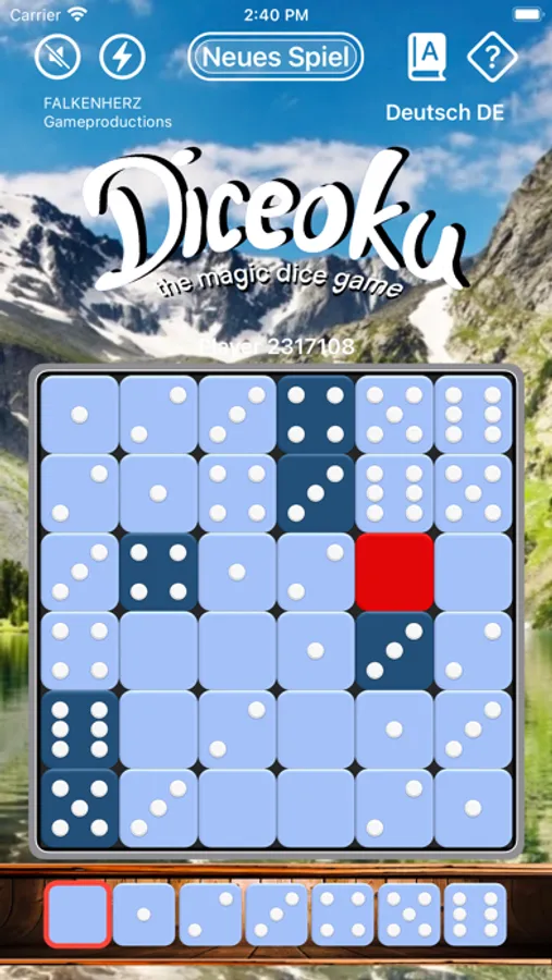 Diceoku ist ein Rätselspiel mit Würfeln, das auf einem quadratischen Spielbrett mit 36 Spielfeldern gespielt wird. Das Spielbrett ist in 6 x 6 gleich große Felder aufgeteilt, auf denen Würfel aufgelegt werden müssen.