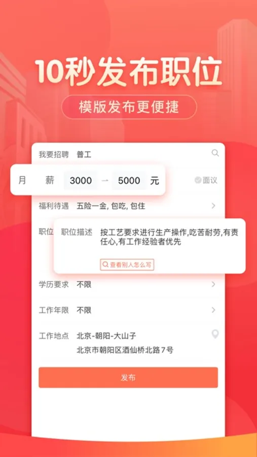 【10秒快速发布】销售、厨师、客服、司机、服务员······职位描述不用手动写,全行业的个性化模板,选中职位发布,10秒就搞定~