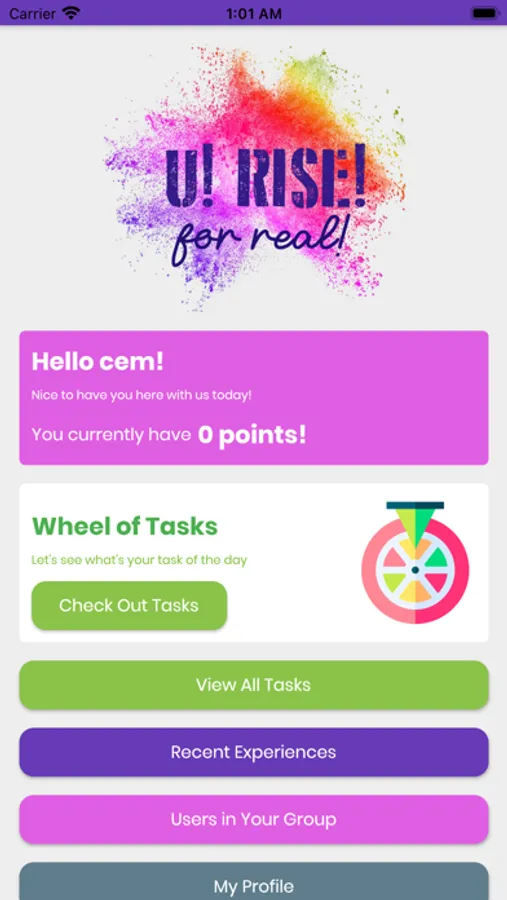 U Rise is intended to be a hub for group of participants complete by completing daily tasks and contribute to other's experiences, from anywhere in the world.