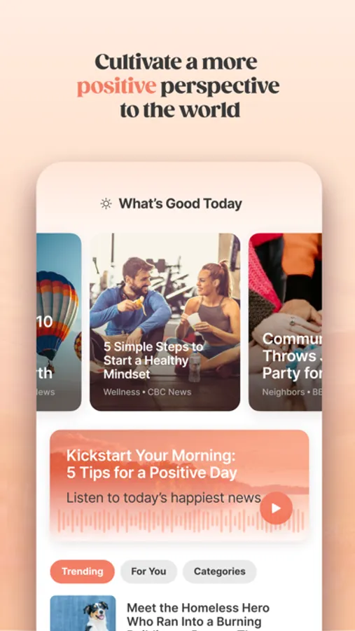 - Personalized feed, customized specifically for you, based on the topics and stories you care about the most to keep you positive, calm and focused throughout the day.