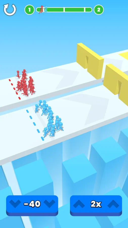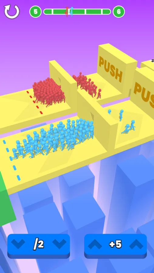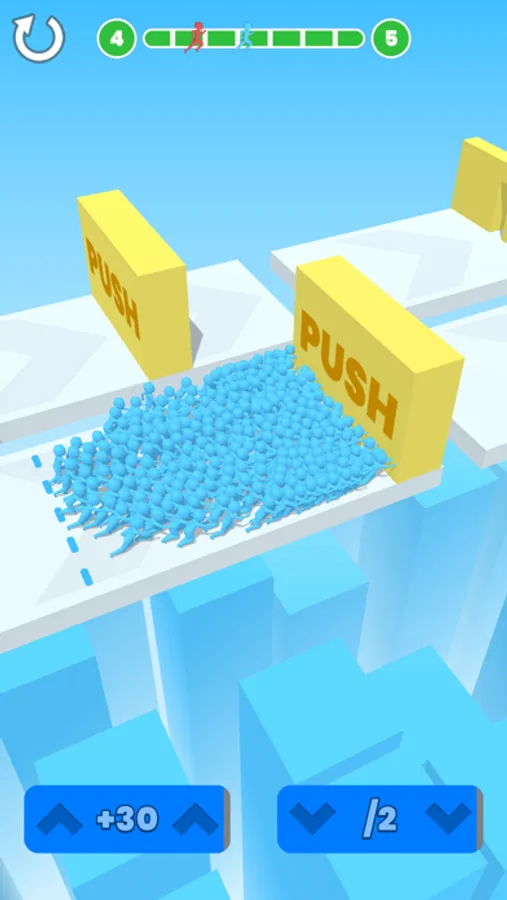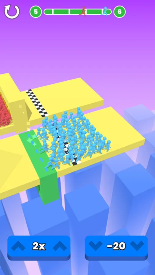 Use the buttons to make your crowd bigger or smaller, to get through the obstacle fastest.