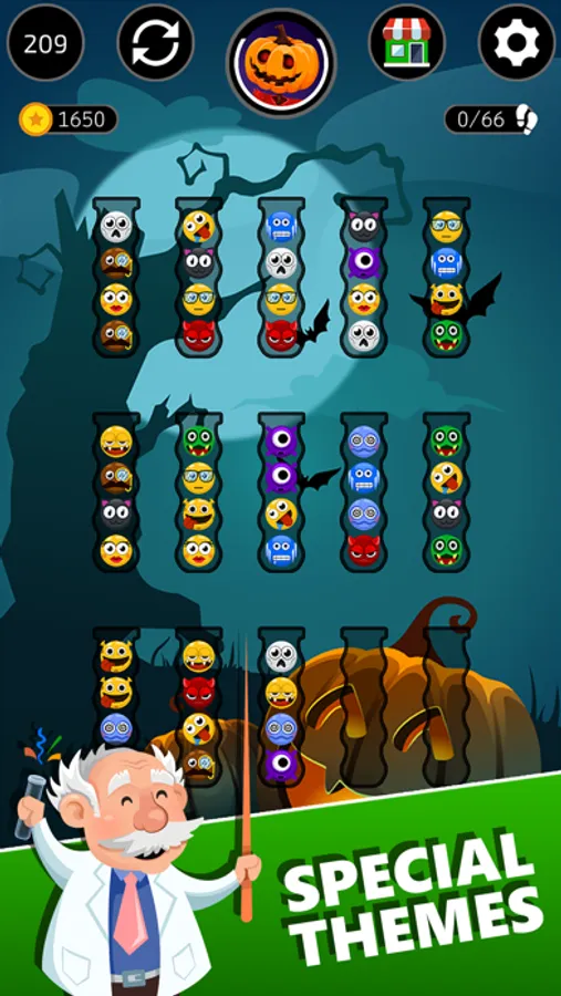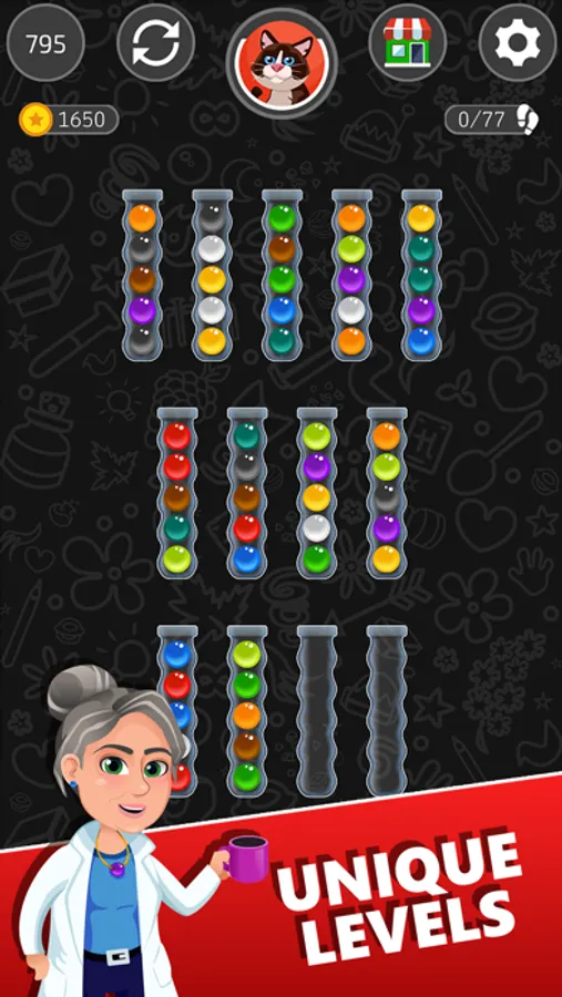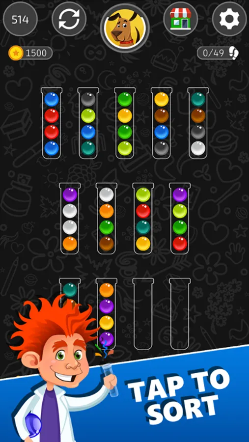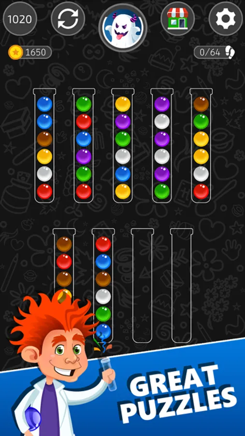 Click the shopping cart and tailor your profile to suit you. You can customize anything you want. Choose between the great variety of theme colors, shapes of tubes, or the color of your sorting balls. Don’t forget to pick your own favorite avatar!