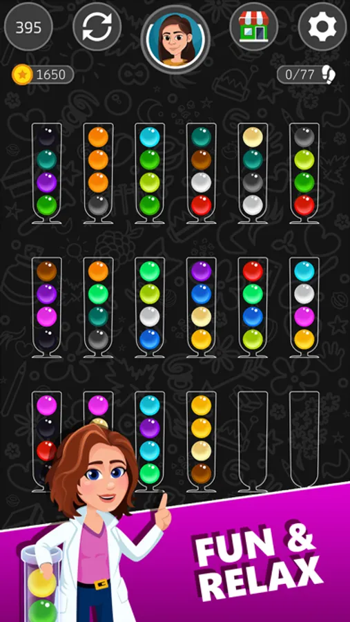 Sort balls into tubes with HINTS. It is a smooth, fast, relaxing, and free ball puzzle game.