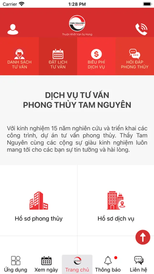 Ứng dụng PHONG THỦY TAM NGUYÊN là ứng dụng tổng thể giới thiệu và triển khai các dịch vụ được cung cấp bởi công ty TNHH kiến trúc Phong Thủy Tam nguyên.