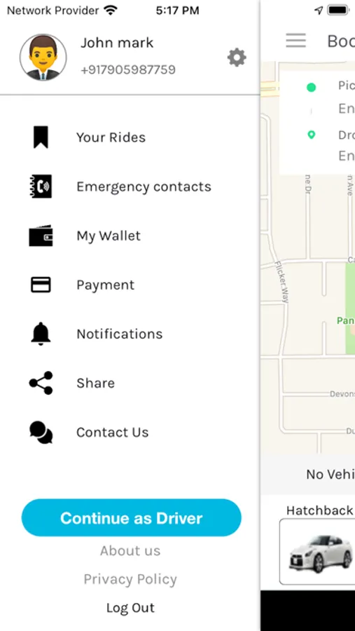 Real-time tracking - Track the availability of drivers and set Pickup location.