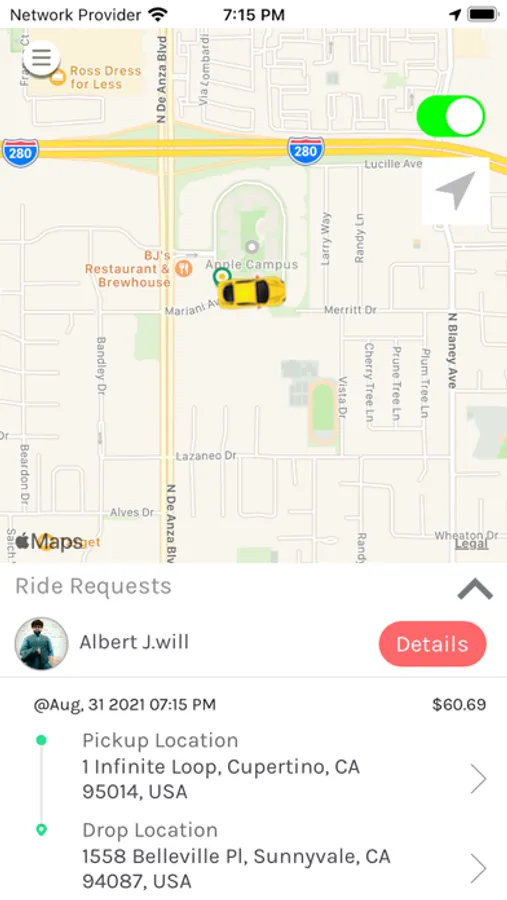 Ride Accept/Reject - Once the rider bids his price, the drivers have three choices to accept, reject, and bid for a higher price. This feature allows drivers to choose their rides and price.
