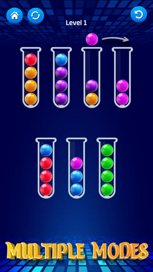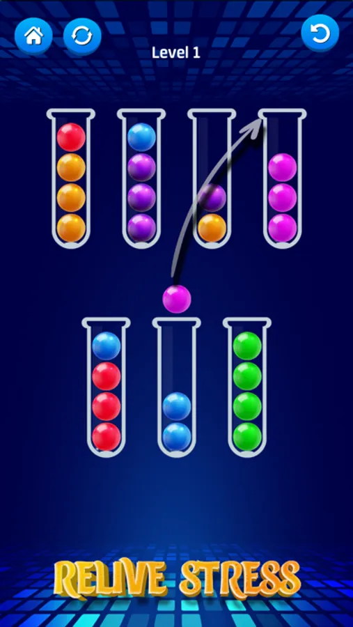 • Tap any tube to move the ball lie on top in the tube to another tube.