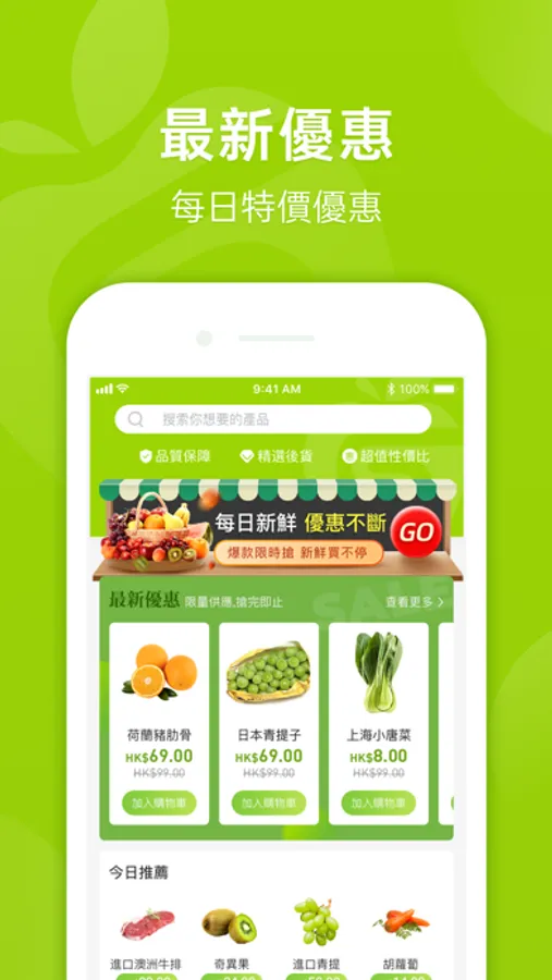 vegetables and frozen meat and seafood around the world. We have our own fleet to deliver to the door. It is committed to providing fresh, safe