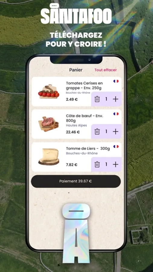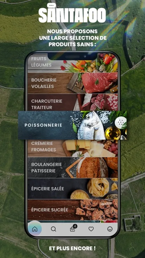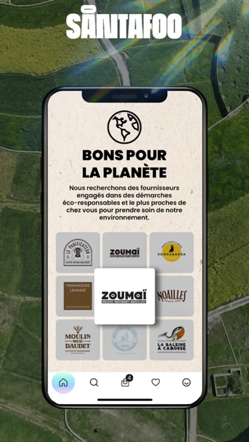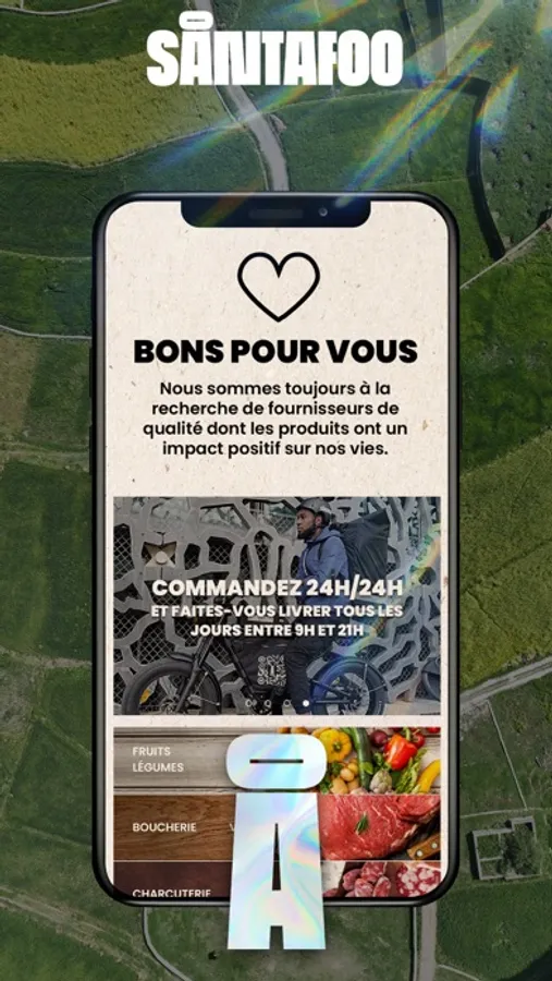 Nous sommes SANTAFOO, votre nouvelle application de livraison de courses. Nous vous aidons à mieux consommer en vous donnant l’accès à des produits de qualité, à des prix abordables :