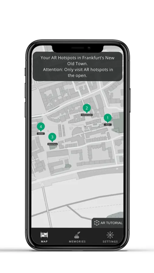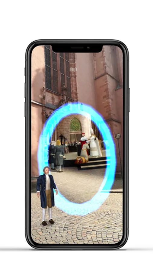 Reise mit Wolfgang Goethe durch die Altstadt Frankfurt. Dabei wird er dich in AR begleiten und ihr werdet zusammen an vier unterschiedlichen Hotspots die damalige Kaiserkrönung besichtigen.