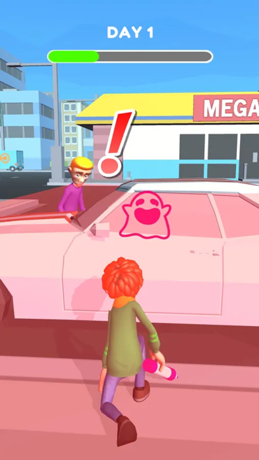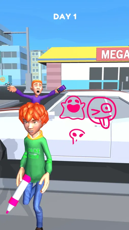 If you think you're going to look back, stop graffiti and hide in the shadow of the car!