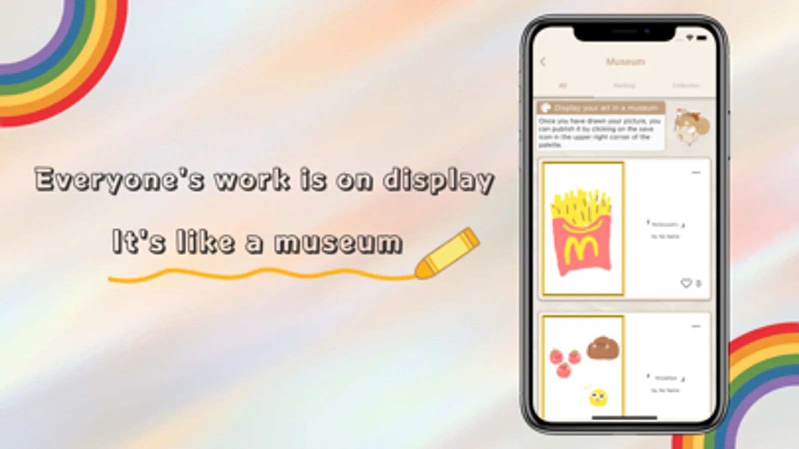 You can enjoy drawing and display your works in the app's museum.