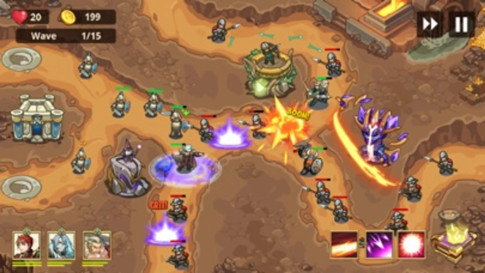 One day, the Eradel kingdom is suddenly attacked by the Goblin army, which used to be far away from man's land. In the critical situation, Prince Lucius and his companion had to leave the kingdom of Eradel and seek help from other allied races. On his journey, he will have to overcome countless challenges as well as different enemies and need talented tacticians to help. Let’s build powerful towers, train royal soldiers of Eradel, control mighty heroes and destroy the enemies!