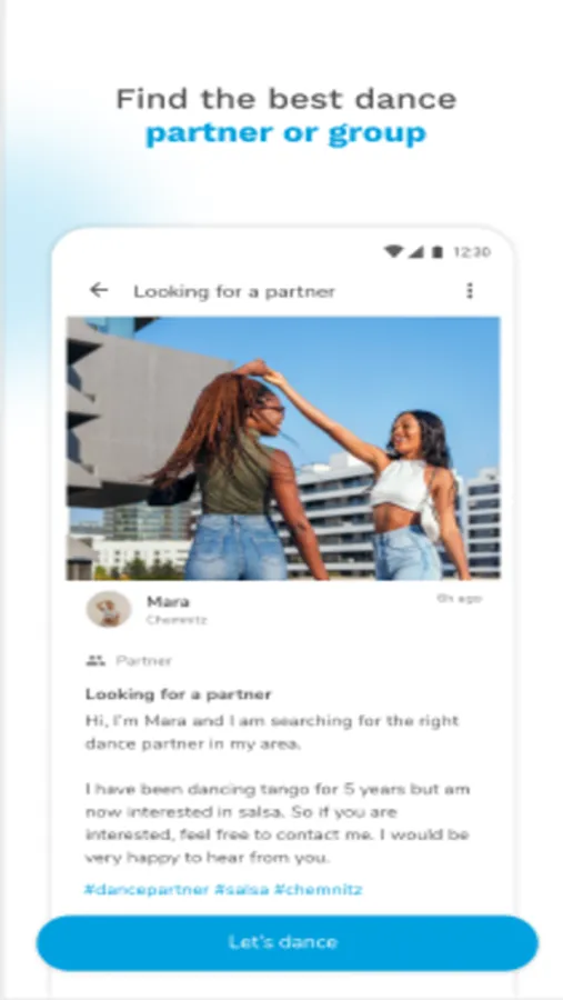 Try it out, download Danceflavors and become part of the dance world: stay up to date about events in your area and buy your tickets directly through the app, get all the important information about dance schools, studios and classes in your area, find dance partners that fit you exactly and connect with the dance community.