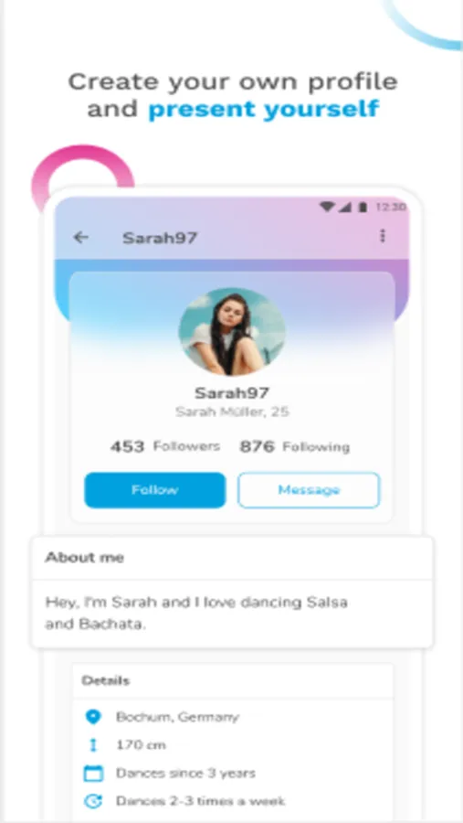 chat with your friends via the integrated messenger get all important information about dance schools or studios in your area