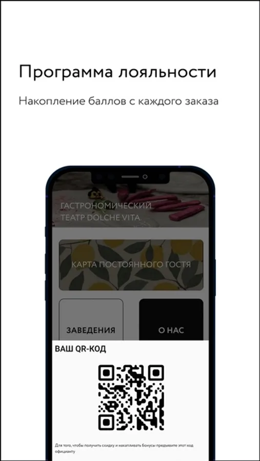 Поможет накапливать балы при заказе в ресторане DOLCE VITA на старте, с последующим расширение на все заведения нашей сети.