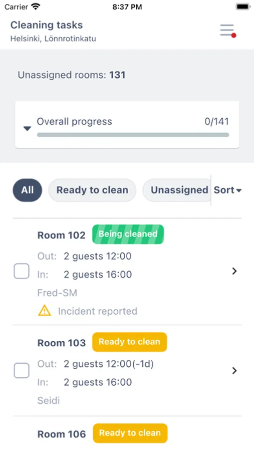 App used by service providers at Omena Hotels.
