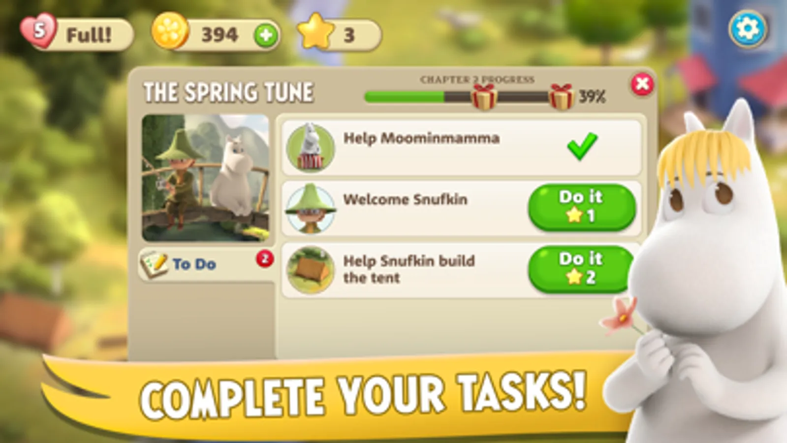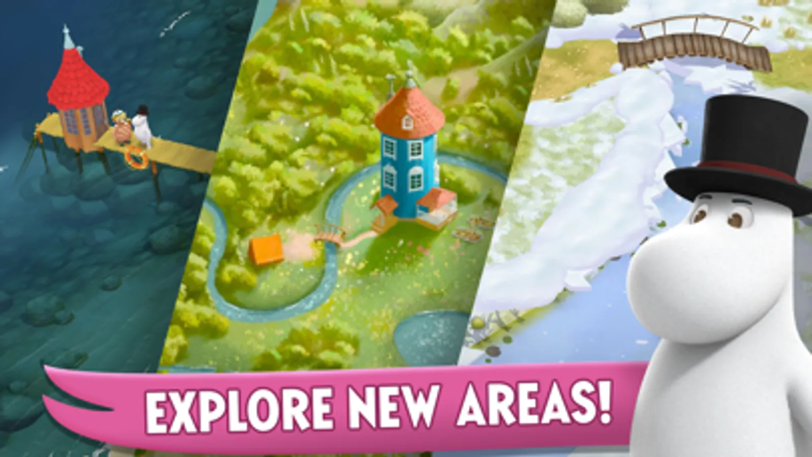 Welcome to Moominvalley – the beautiful and enchanting home of the lovable Moomin characters! Nestled in this idyllic valley, the Moomins’ home is peaceful and picturesque, but after a long winter (which Moomintroll has slept through in its entirety), the valley is ready to bloom again. Follow the adventurous Moomintroll in a captivating storyline as you solve puzzles and decorate the surroundings!