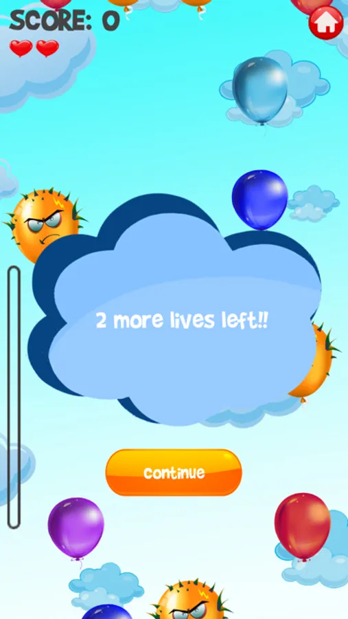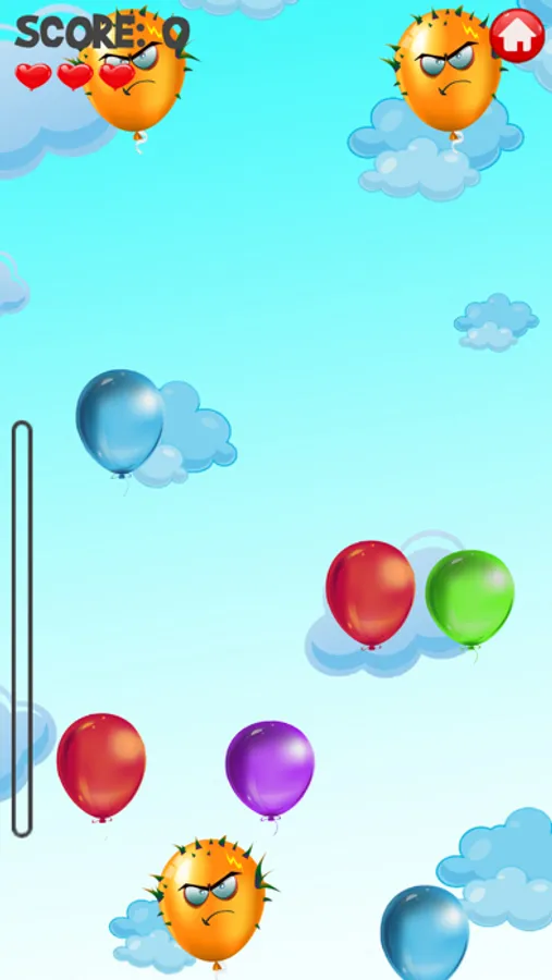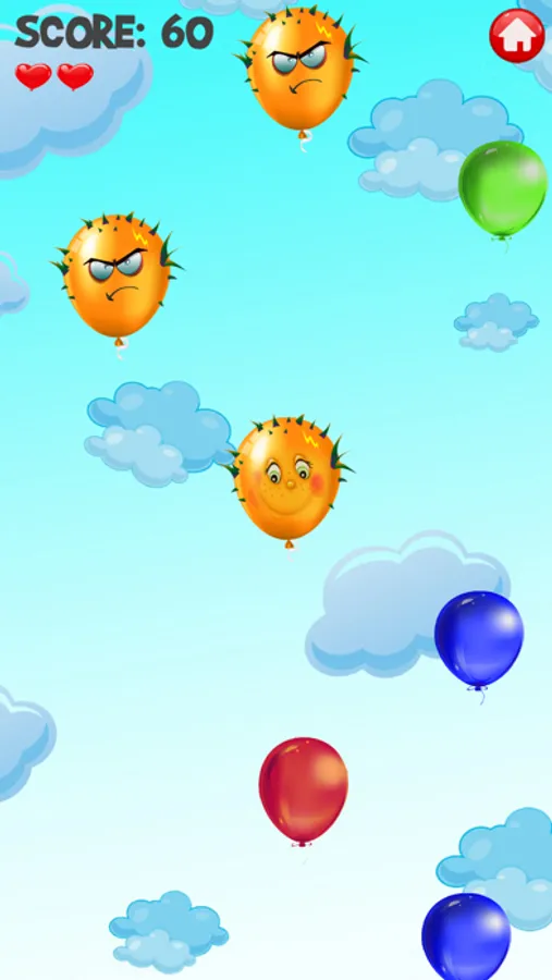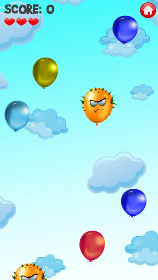 Smiley face balloons are your friends - drag the smiley balloon over the spiked balloon to crush the malicious spiked balloon!