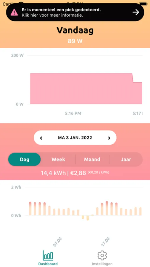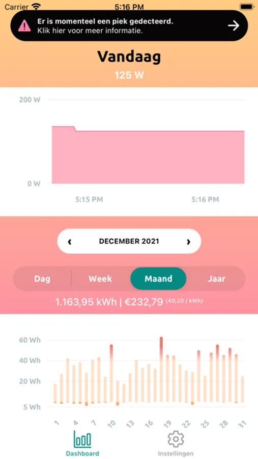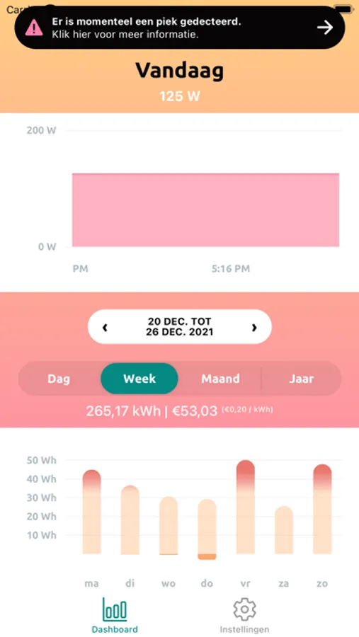 Daarenboven heeft de Flow app je een handige melding als je in de buurt komt van je maandelijkse piek, zodat je kan inspelen op de nakende invoering van het capaciteitstarief.