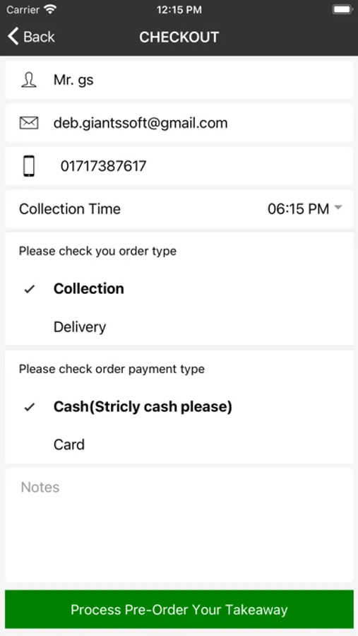 – Select to pay by cash on delivery / collection