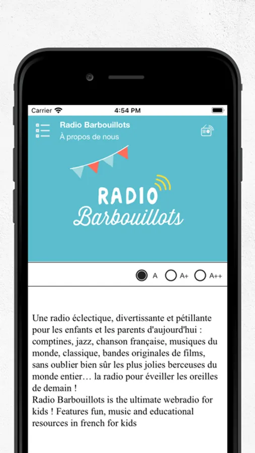 Radio Barbouillots is the ultimate webradio for kids ! Features fun, music and educational resources in french for kids.