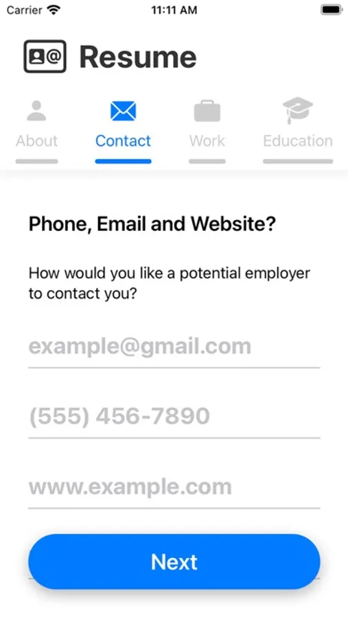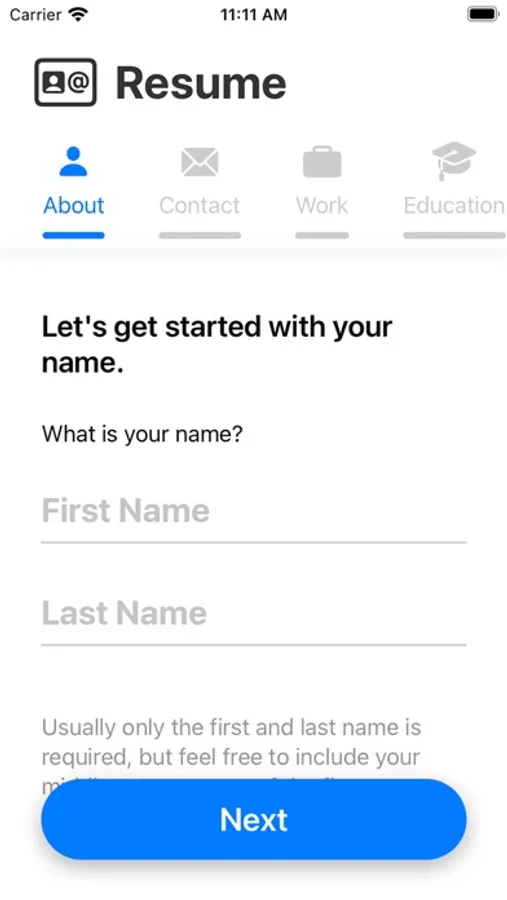 Create professional resumes with just a few taps, choose one of our templates and export to PDF.