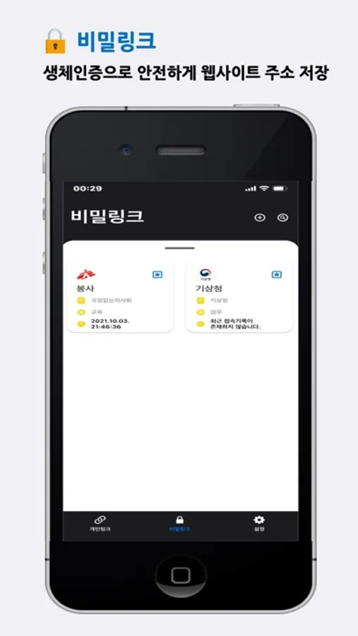 - FaceID, TouchID 등의 생체인식을 통하여 오직 자신만이 해당 웹사이트 주소를 확인할 수 있습니다.