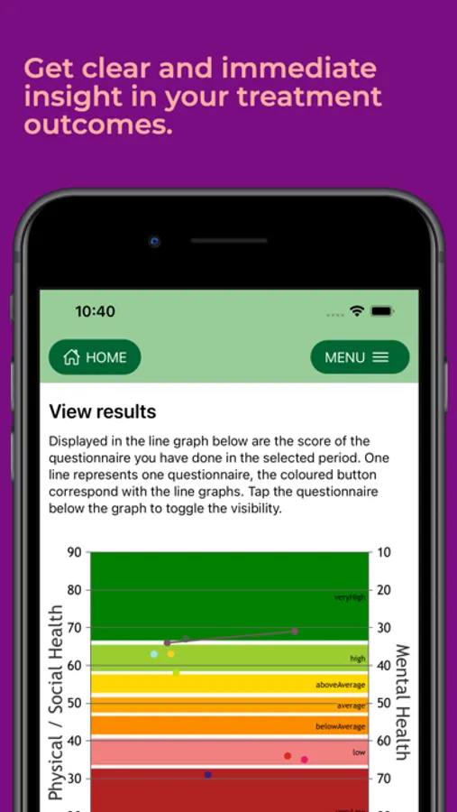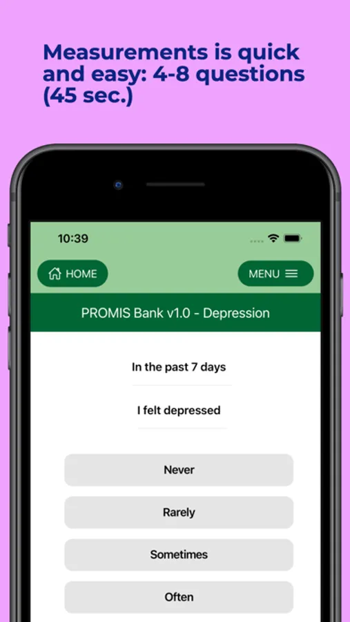 To explain it more simple: similar to what a thermometer does measuring body temperature, EasyROM Selfcare does this for symptoms that are harder to measure, but really exist, because they affect your health and quality of life. When those symptoms , like fatigue, physical function, depression, anxiety, relationship with friends/family/co-workers and so on, have a negative impact on your health and way of life, you most likely want help to cope, recover or be cured, just to get on with your life. Now, EasyROM Selfcare is the only free app, you, me, everybody in the world who speak English, can measure the severity and intensity of our health concerns, symptoms and complaints using very short, scientifically proven and intelligent questionnaires.