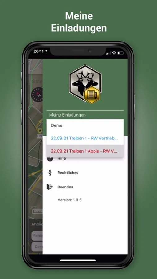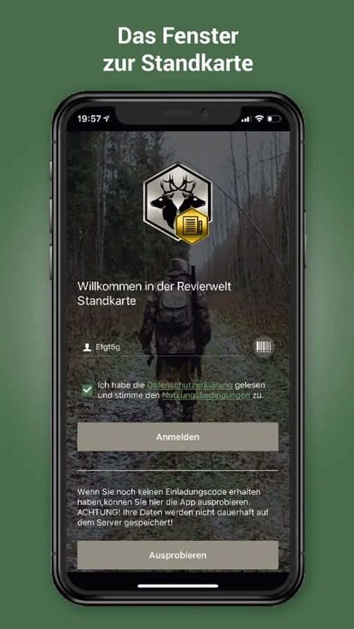 Sie erhalten mit der Einladung aus der mit Revierwelt geplanten Drückjagd einen Einladungs-Code, den Sie bestätigen bzw. erfassen müssen, um Meldungen zur aktuellen Drückjagd zu speichern.