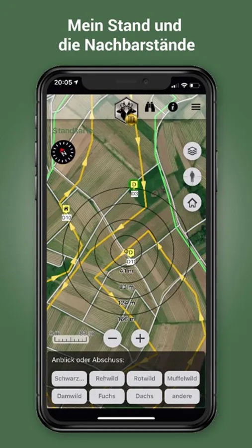 Die REVIERWELT Standkarte ist ein Element der Drückjagdplanung mit Revierwelt.