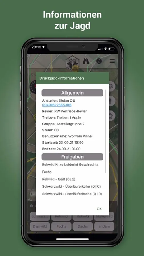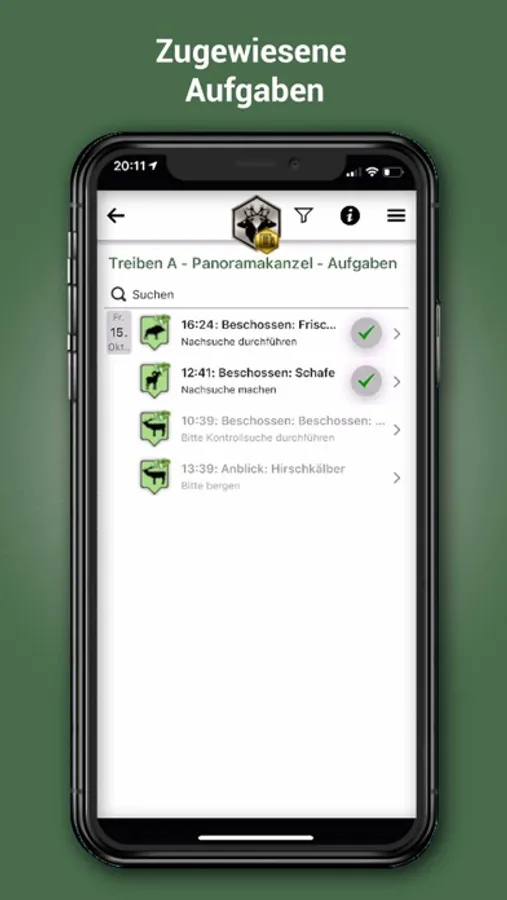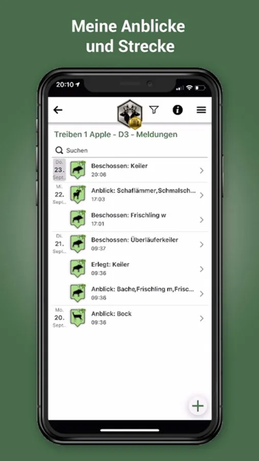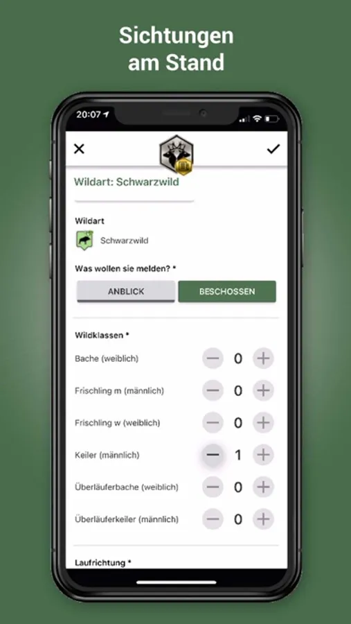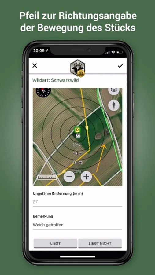 Alle Sichtungen, erlegte und beschossene Stücke können erfasst und werden automatisch an die Jagdleitung gemeldet.