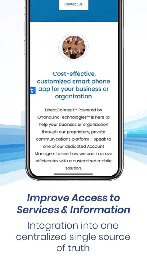 DirectConnect™ Powered by OhanaLink™ is a proprietary communications and support platform that enables your company to implement mobile technology to improve operational efficiencies directly on smartphones—privately and securely. DirectConnect™ allows your organization or agency to select from a base product that offers real-time updates, information, and resources, with the ability to add additional functionality and increase communications and support, as needed.