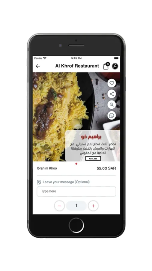 Al Khrof Restaurant KSA application gave you the opportunity to order the best traditional dishes in simple steps. All you have to do is open the application, then find the category that suits your needs & click on it. You will be able to see all the available dishes, add what you want to your cart. Complete the shopping process by choosing how to receive it, the preferable payment method and the rest of the required information.