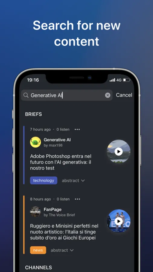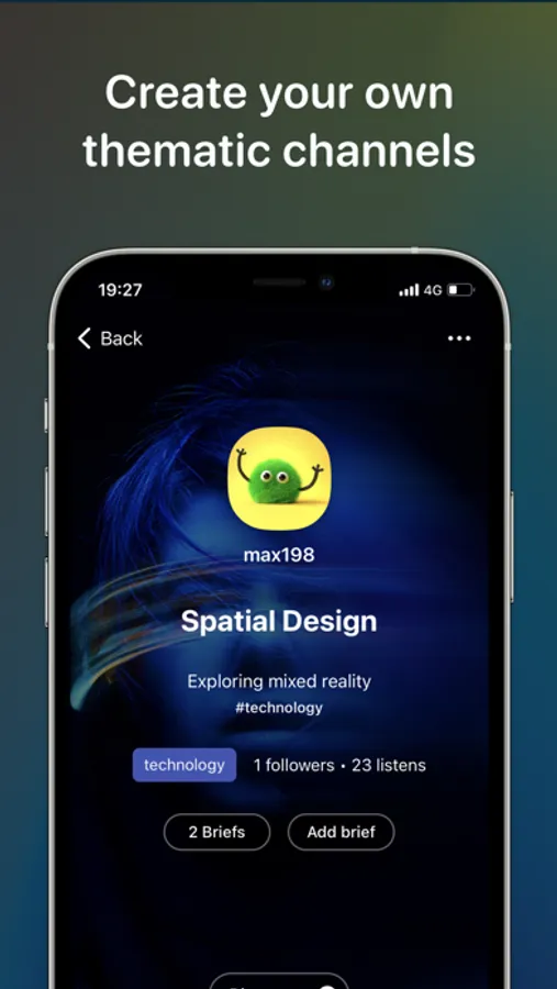 Brief allows users to create and share short audio pills in 120 different languages. Brief's channels are a personalized collection of content created by users themselves, based on the topics that interest them.