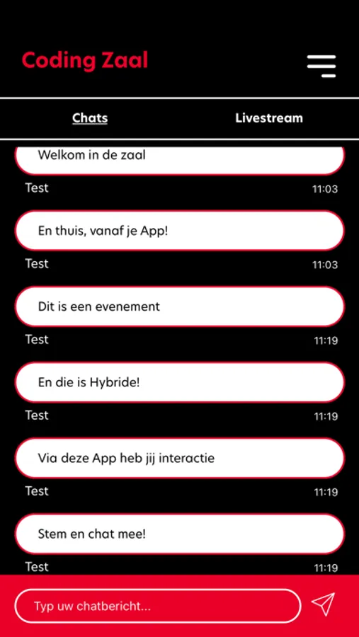 Engage with your live, hybrid or online event through this app. Give your vote by using the (legal) voting function. Participate in the chat to interact with other attendants and select in which room you want to contribute.