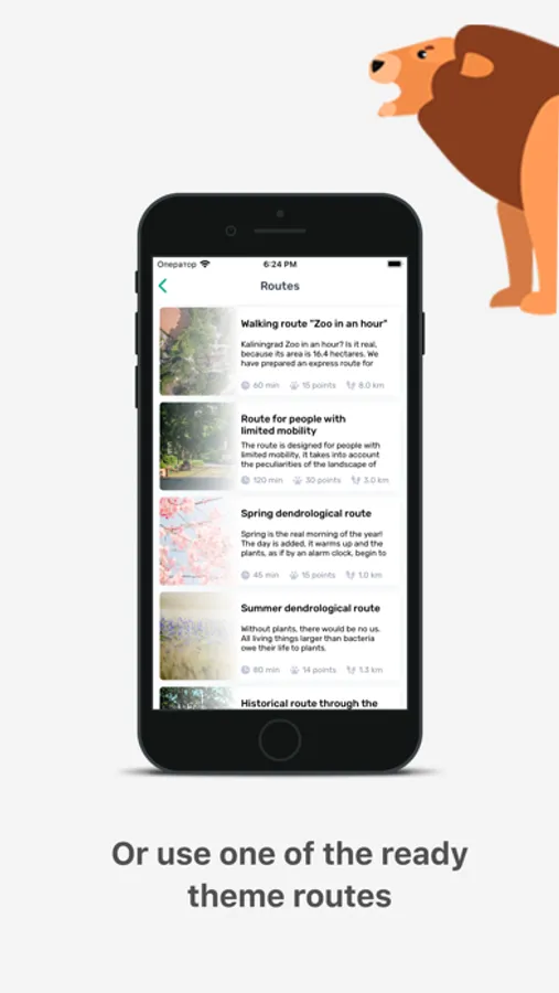 Buy e-tickets online and skip the line. Build your own routes or use ready ones. Listen to the most interesting audio guide recorded by Nikolai Drozdov (only Russian), and with the help of the augmented reality function, immerse yourself in the atmosphere of the Ethnographic Exhibition of the early 20th century. If you have favorite or unexplored animals, find them on the map and make your way to them. Don't miss the demonstration feeding of animals of interest to you by setting feeding notifications, you will be notified 30 minutes before the start. Support the zoo by participating in the animal care program or by providing one-time financial assistance from the Kaliningrad Zoo mobile application.