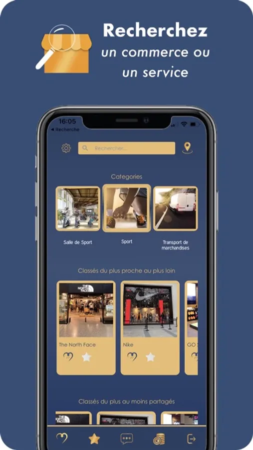 De plus nous permettons à travers nos multi-fonctionnalités de retrouver un commerçant en activant simplement la localisation, vos commerçants apparaissent par catégories exemple hôtels, garages, mode, sport etc.. classés du plus proche au plus loin et du plus partagés au moins partagés.
