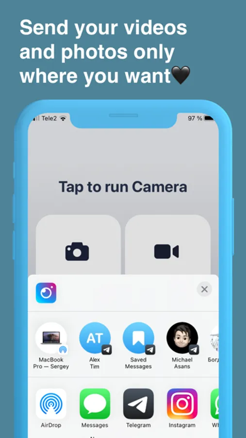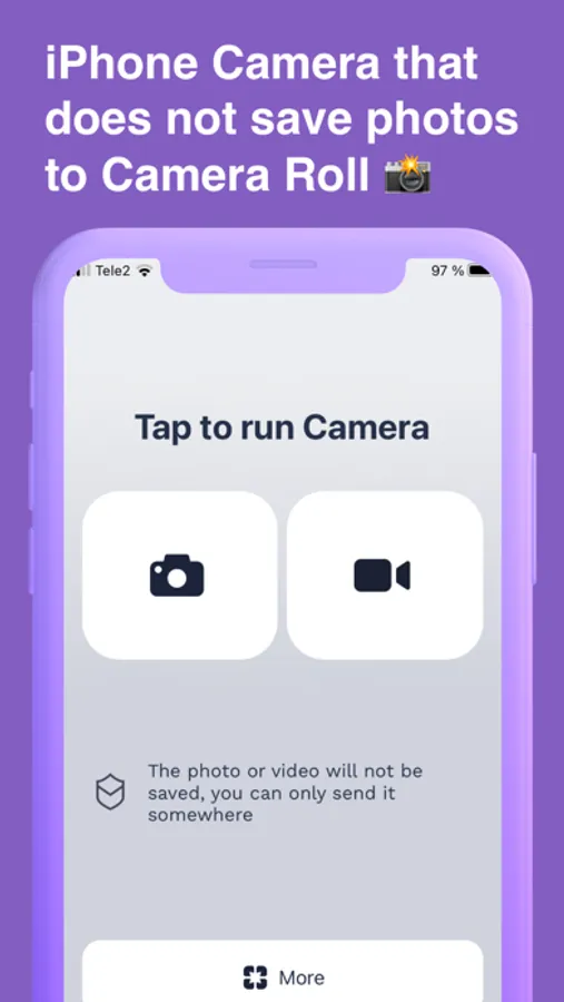 The InviCamera app allows you to not overload your camera roll with photos you do not need :) Shoot a photo or video, send it to your friends on socials or messengers, and here it is! InviCamera saves you from a necessity to clean up your camera roll or iCloud: your photos and videos appear only where you send them to, they are not saved to the iPhone or iCloud. InviCamera works very simply: you open it, and it runs the camera straight away, all that remains is to take a photo or video and send it! You are able to set what will be launched by default: Photo or Video camera, and switch them at any moment :)