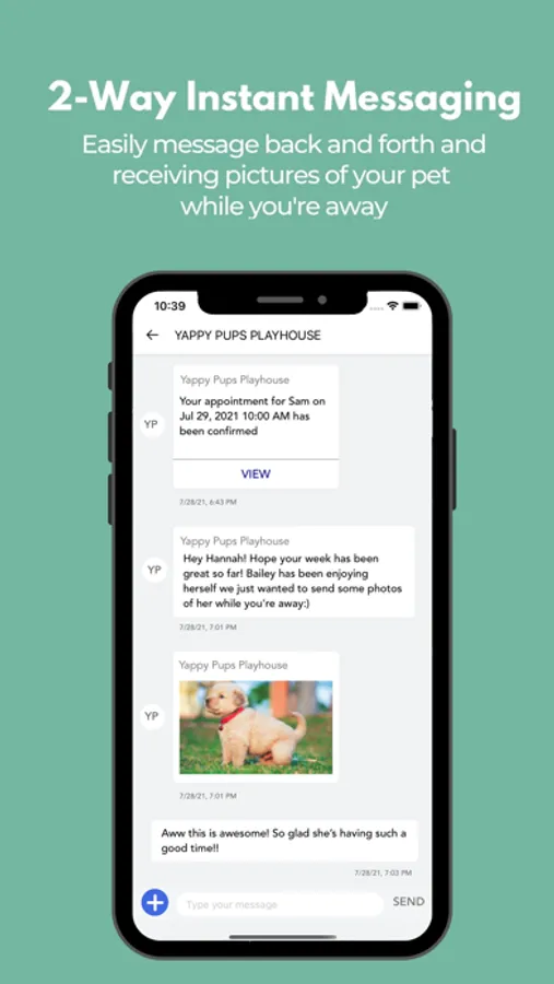 Yappy Pups offers the very best in pet care! Use our app to schedule appointments, receive status updates & pet pictures, chat with us, make contactless payments, and much more! Come see us at Yappy Pups where we delight you and your pets!