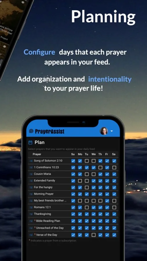 • Determine which days of the week that you want each prayer to appear in your prayer feed
