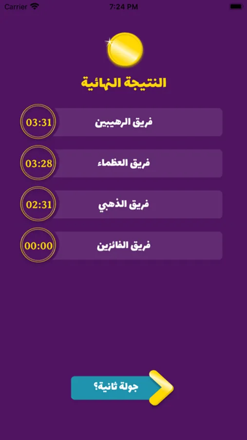 - نهاية كل جولة تظهر شاشة نتائج اللعبة.