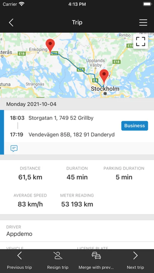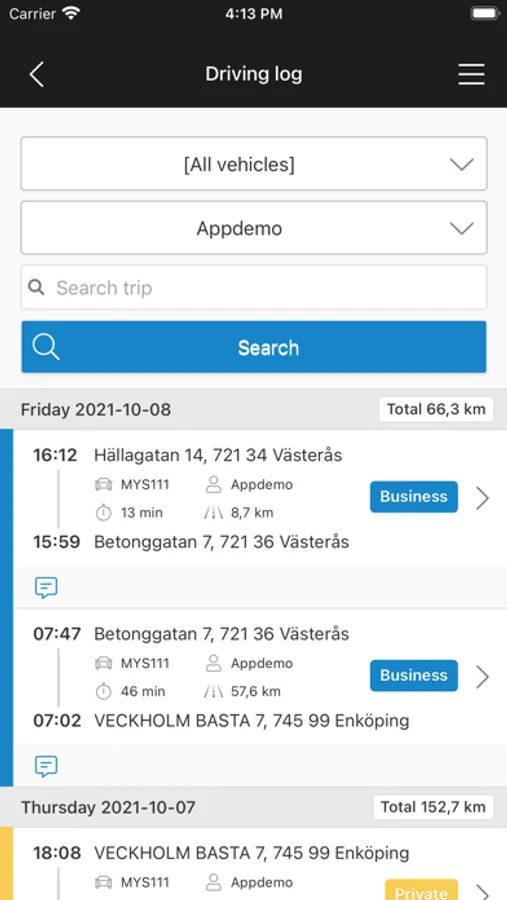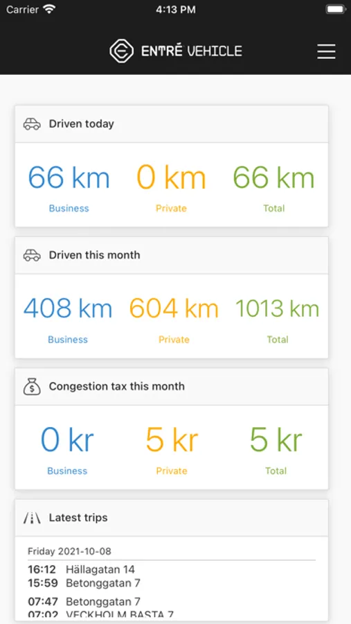 With the Entré Vehicle app, you handle your electronic driving journal from Entré Vehicle easily in your mobile.